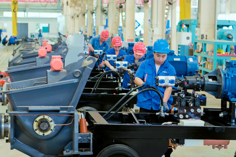 HBT-12D型泵送式濕噴機(jī),是我公司結(jié)合混凝土泵送式輸送和稀薄流輸送的優(yōu)點(diǎn),研制開(kāi)發(fā)的液壓泵送式濕噴機(jī)系列產(chǎn)品之一。該機(jī)采用液壓傳動(dòng),以泵送方式將砼輸送至一定距離 或至噴頭處,再用壓縮空氣將砼噴射到支護(hù)面上。同時(shí),在噴頭處加入適量速凝劑與砼混合,速凝劑的添加量通過(guò)計(jì)量泵調(diào)節(jié)。采用三泵結(jié)構(gòu),換向速度快,脈沖···