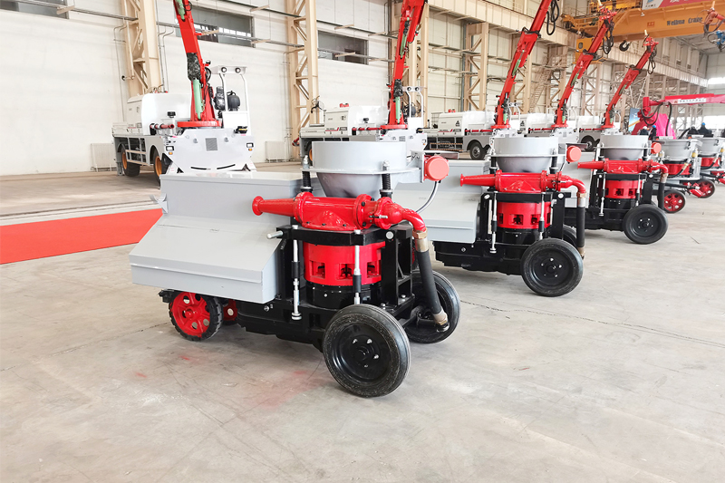 HBT-12D型泵送式濕噴機(jī),是我公司結(jié)合混凝土泵送式輸送和稀薄流輸送的優(yōu)點(diǎn),研制開發(fā)的液壓泵送式濕噴機(jī)系列產(chǎn)品之一。該機(jī)采用液壓傳動(dòng),以泵送方式將砼輸送至一定距離 或至噴頭處,再用壓縮空氣將砼噴射到支護(hù)面上。同時(shí),在噴頭處加入適量速凝劑與砼混合,速凝劑的添加量通過計(jì)量泵調(diào)節(jié)。
