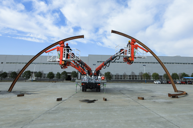 智能拱架臺(tái)車是我公司研發(fā)的一款具備拱架安裝、錨桿網(wǎng)片安裝,鋼筋網(wǎng)鋪設(shè)、輔助打鉆、裝藥、處理欠挖作業(yè)、輔助質(zhì)量檢測(cè)、風(fēng)水管安裝、缺陷修補(bǔ)等多功能,多用途的新型隧道施工設(shè)備。采用新的立架工藝,可單次進(jìn)行2-3榀預(yù)制焊接拱架的安裝,真正解決傳統(tǒng)人工立架施工時(shí)間過長(zhǎng),人員勞動(dòng)強(qiáng)度大,危險(xiǎn)性高的問題,滿足機(jī)械化快速施工···